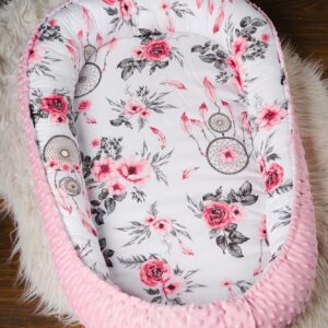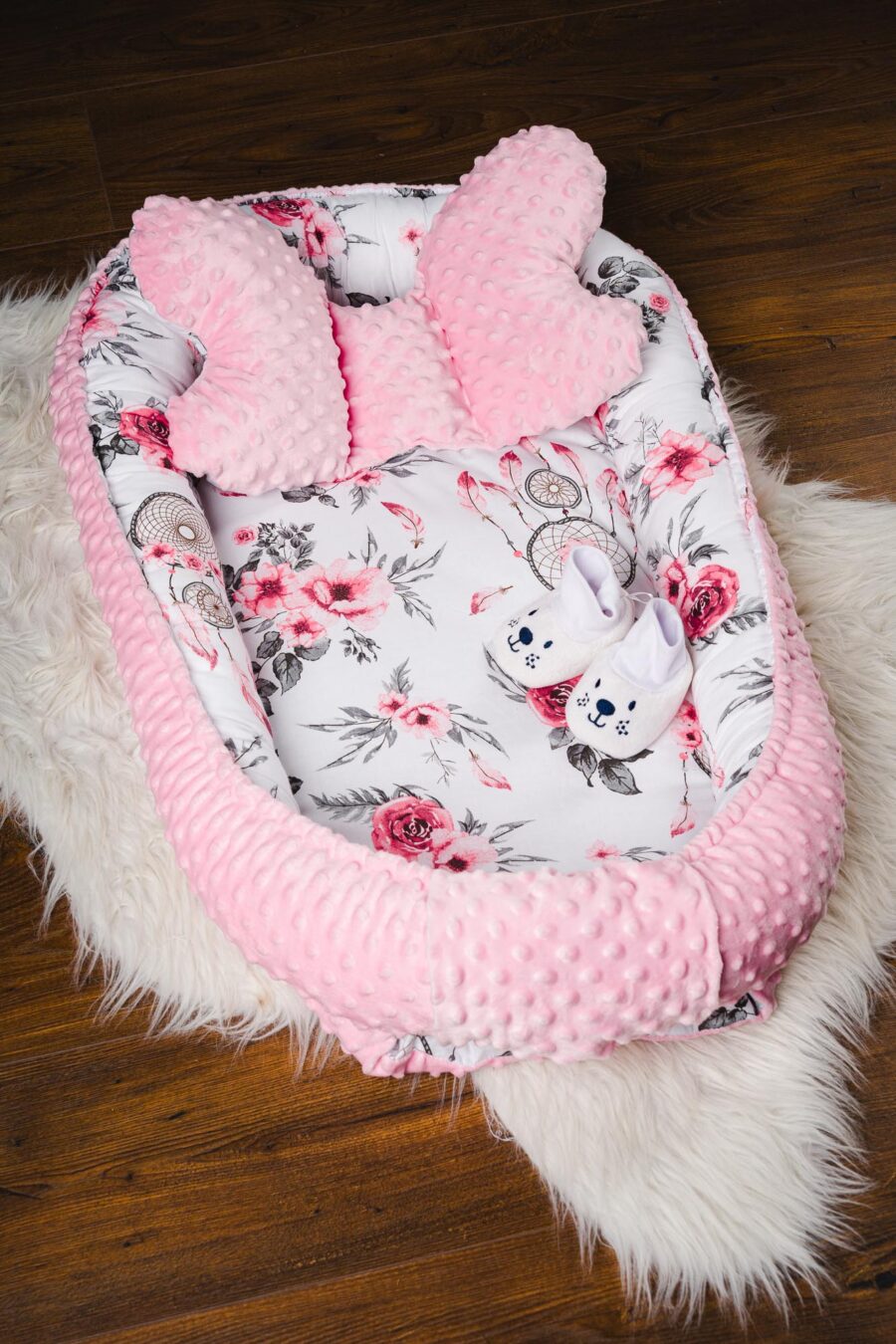 W ostatnim czasie kokony niemowlęce cieszą się wśród rodziców coraz większą popularnością. Kokon lub inaczej gniazdko ma wiele zastosowań. Mogą posłużyć jako przenośne łóżeczko, możemy umieścić go na dywanie, kanapie, łóżku a boki gniazdka zabezpieczą maluszka przez sturlaniem się bądź wypadnięciem. Chronią dziecko podczas wspólnego spania z rodzicami, dając maleństwu bezpieczną, wygodną przestrzeń oraz zapewniają izolacje co chroni maluszka przed przyduszeniem. Kokonik może bez problemu zabrać ze sobą w podróż gdyż jest bardzo lekki i można go złożyć dzięki czemu zajmuje mało miejsca.Kokony wykonane przez nas są zupełnie bezpieczne – ich wypełnienie jest antyalergiczne i antybakteryjne.