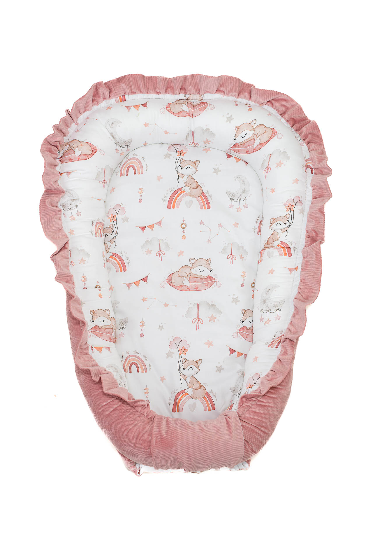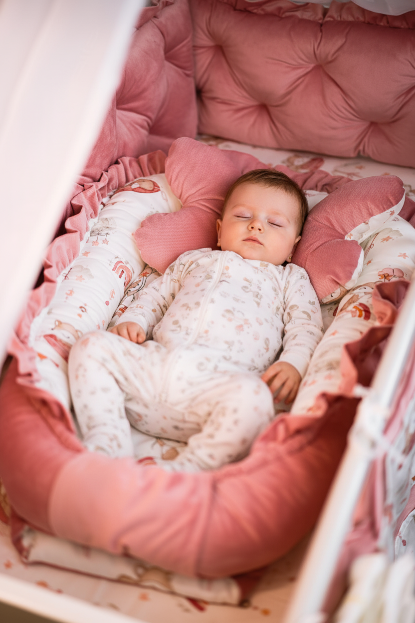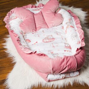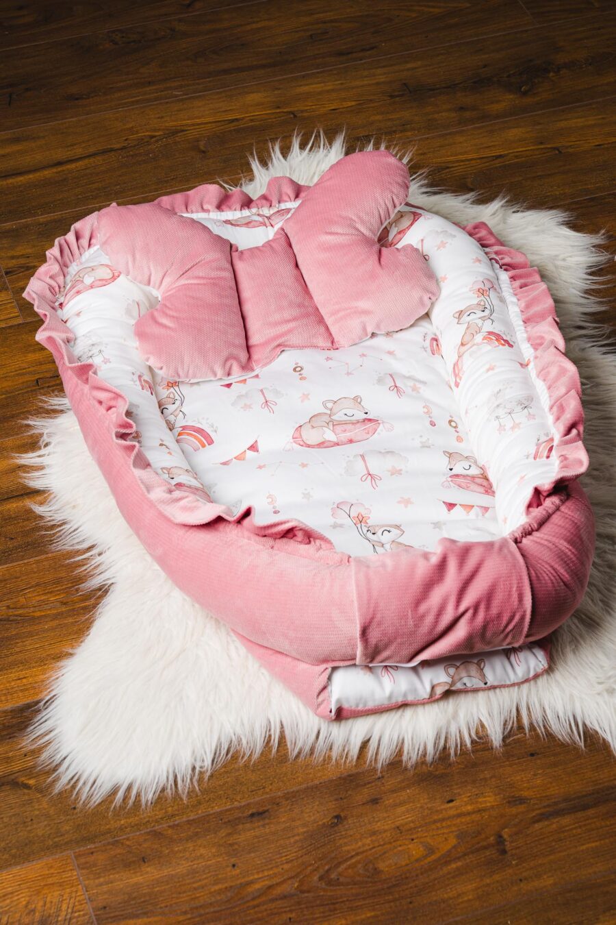 W ostatnim czasie kokony niemowlęce cieszą się wśród rodziców coraz większą popularnością. Kokon lub inaczej gniazdko ma wiele zastosowań. Mogą posłużyć jako przenośne łóżeczko, możemy umieścić go na dywanie, kanapie, łóżku a boki gniazdka zabezpieczą maluszka przez sturlaniem się bądź wypadnięciem. Chronią dziecko podczas wspólnego spania z rodzicami, dając maleństwu bezpieczną, wygodną przestrzeń oraz zapewniają izolacje co chroni maluszka przed przyduszeniem. Kokonik może bez problemu zabrać ze sobą w podróż gdyż jest bardzo lekki i można go złożyć dzięki czemu zajmuje mało miejsca.Kokony wykonane przez nas są zupełnie bezpieczne – ich wypełnienie jest antyalergiczne i antybakteryjne.