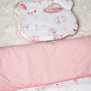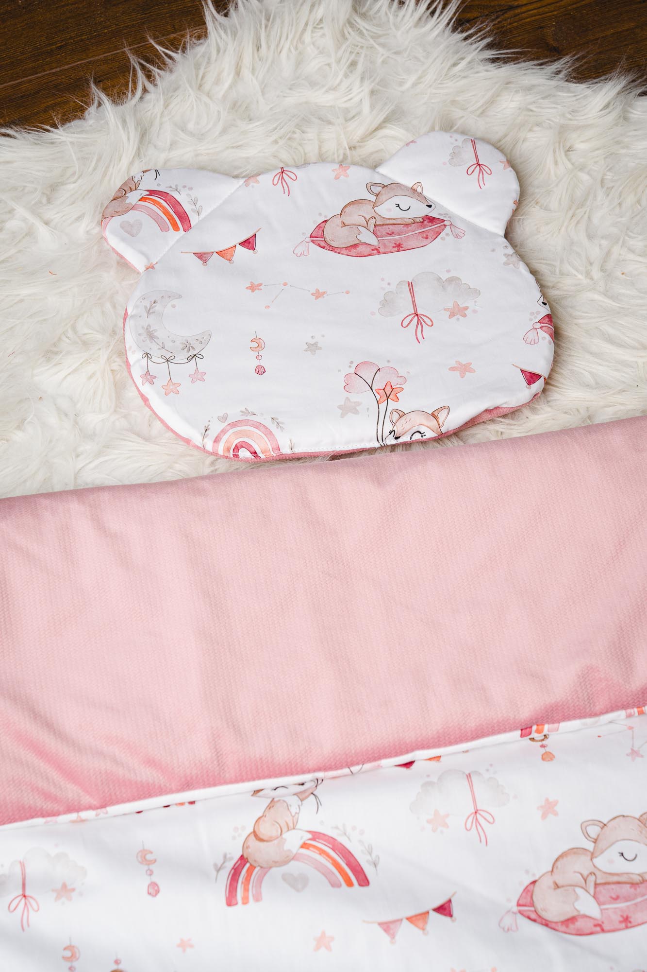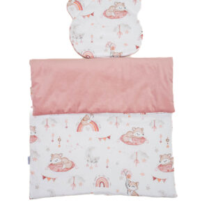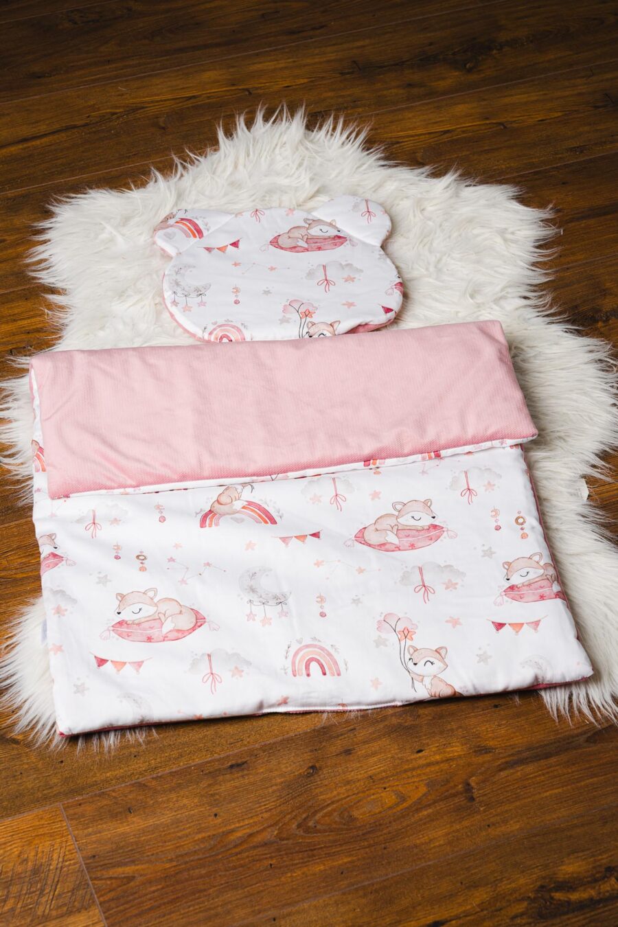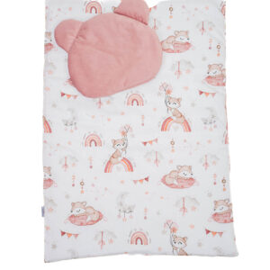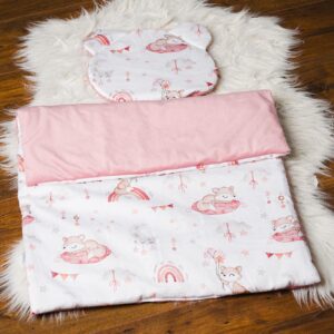 Kołderka z poduszką jest to gotowy zestaw pościeli z wszytym antyalergicznym wypełnieniem. Włóknina wewnątrz jest bezpieczna dla skóry dziecka, miła w dotyku oraz zapewnia komfortowy sen. Jednoczęściowe, gotowe kołderki nie odkształcają się i nie rolują nawet przy najbardziej ruchliwym dziecku. Doskonale sprawują się podczas prania, dzięki czemu mamy pewność, że wyprawka zachowana jest w odpowiedniej czystości.