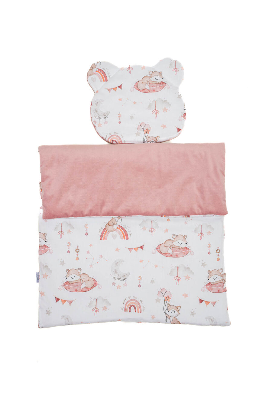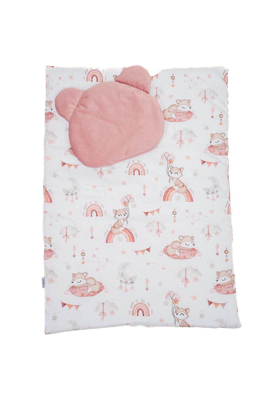Kołderka: 75cm x 55 cm Poduszka: Miś