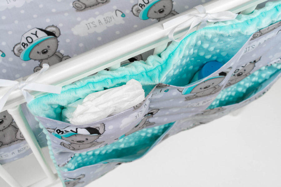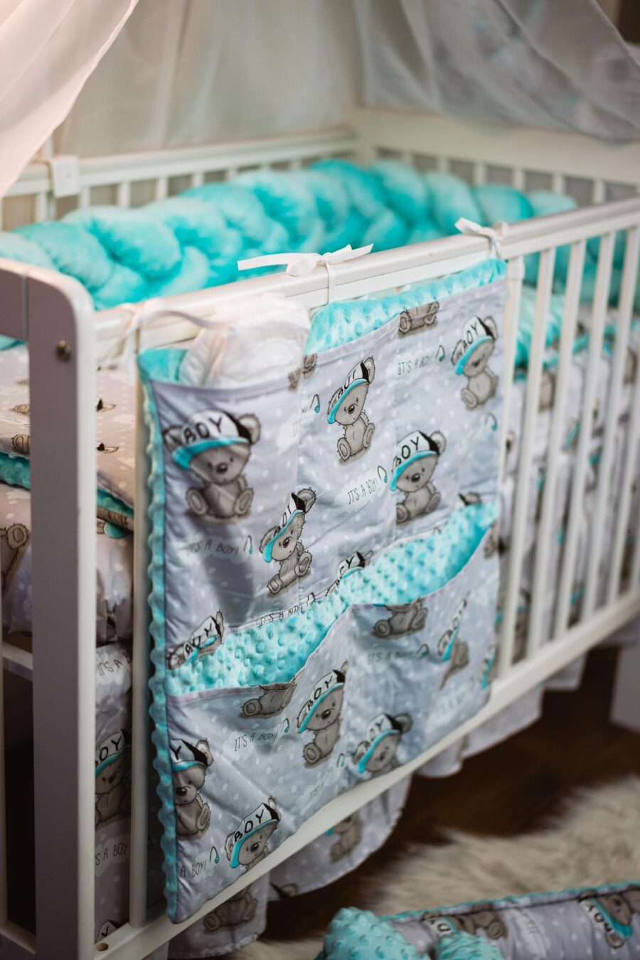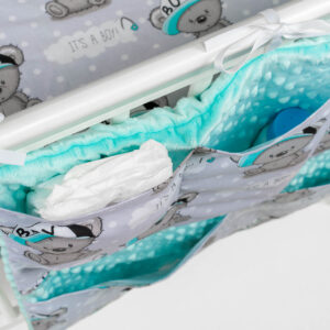 Organizer pełni co najmniej dwie funkcje, pomieści wszystko co niezbędne w użytku dziennym a jednocześnie jest ozdobą pokoju dziecięcego. Uniwersalne wymiary i pojemne kieszenie są stworzone do przechowywania pieluszek, butelek, mokrych chusteczek, kosmetyków do pielęgnacji maleństwa itp.Nasze ręcznie szyte organizery od 4 do 6 kieszonek w zależności od upodobania.