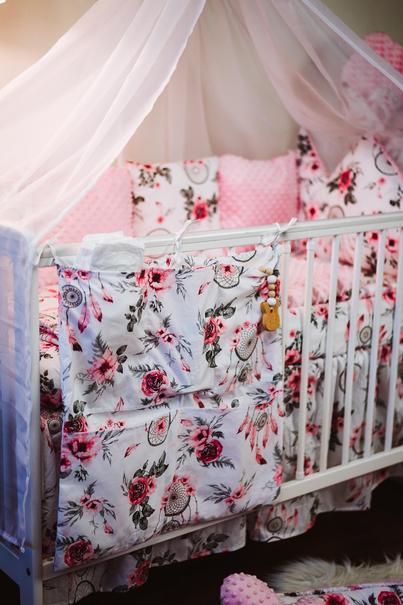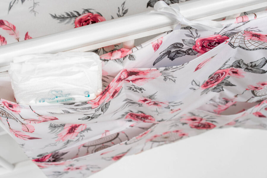 Organizer pełni co najmniej dwie funkcje, pomieści wszystko co niezbędne w użytku dziennym a jednocześnie jest ozdobą pokoju dziecięcego. Uniwersalne wymiary i pojemne kieszenie są stworzone do przechowywania pieluszek, butelek, mokrych chusteczek, kosmetyków do pielęgnacji maleństwa itp.Nasze ręcznie szyte organizery od 4 do 6 kieszonek w zależności od upodobania.