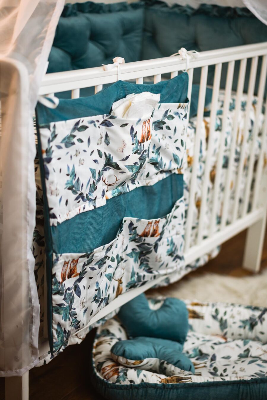 Organizer pełni co najmniej dwie funkcje, pomieści wszystko co niezbędne w użytku dziennym a jednocześnie jest ozdobą pokoju dziecięcego. Uniwersalne wymiary i pojemne kieszenie są stworzone do przechowywania pieluszek, butelek, mokrych chusteczek, kosmetyków do pielęgnacji maleństwa itp.Nasze ręcznie szyte organizery od 4 do 6 kieszonek w zależności od upodobania.