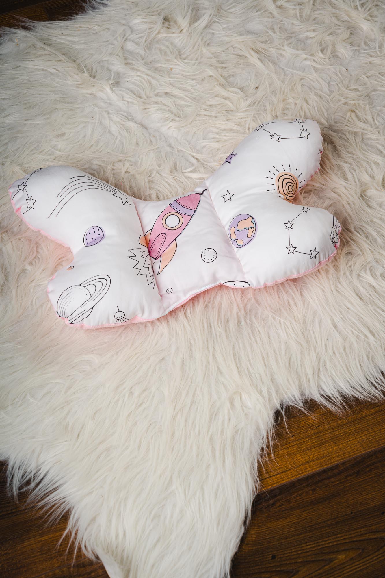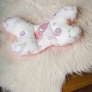 Antywstrząsowa poduszka, która swoją nazwę zawdzięcza nietypowemu kształtowi.Wykonana z myślą o komforcie i bezpieczeństwie dziecka podczas podróży w wózku czy foteliku – specjalne wyprofilowanie zapobiega mikrowstrząsom podczas jazdy.Sprawdza się idealnie już od pierwszych dni życia maleństwa. Wypełniona jest ona niezwykle miękką, sprężystą, atestowaną, antyalergiczną silikonową włókniną.