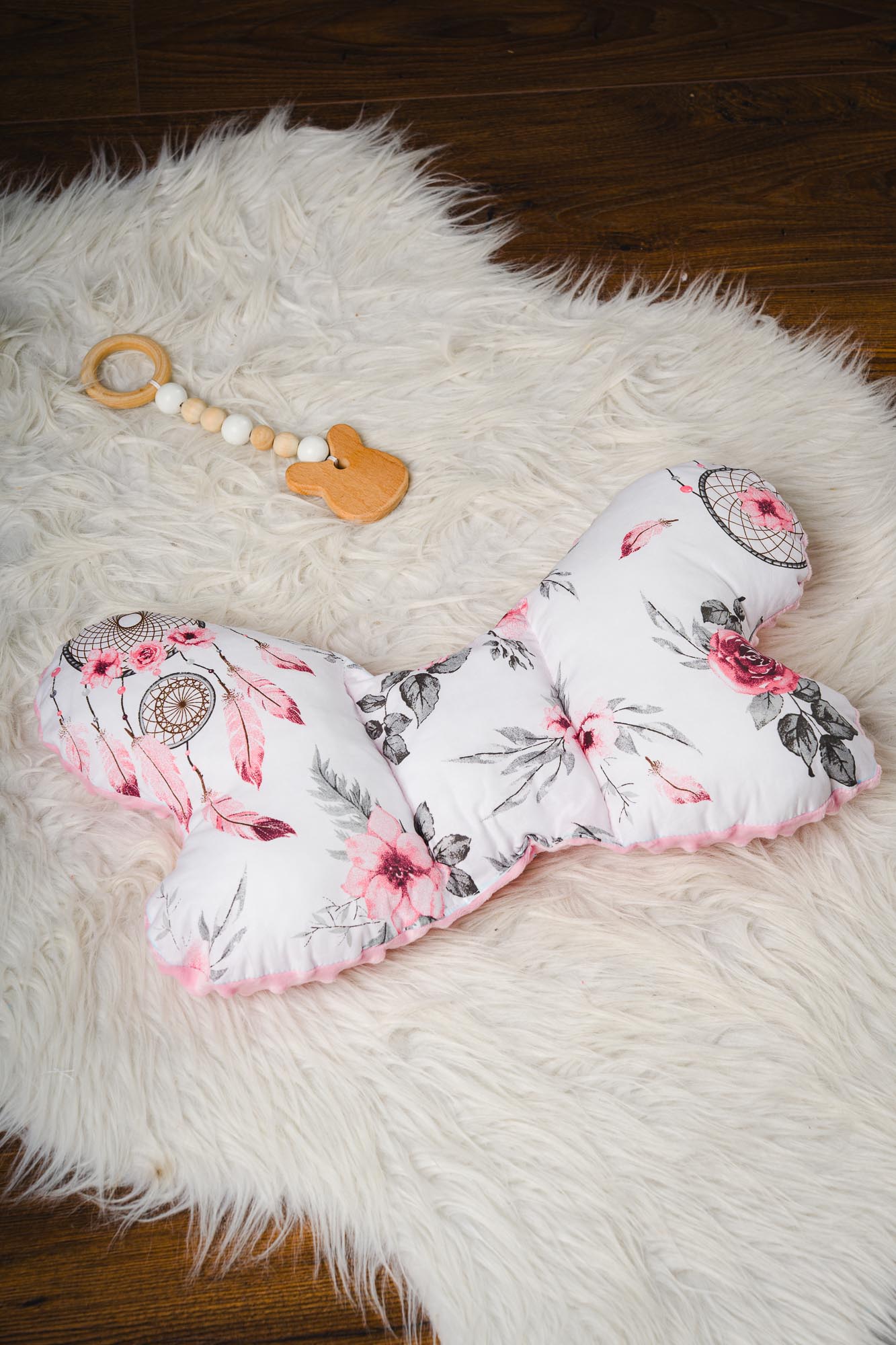 Poduszeczka jest dwustronna – z jednej strony to 100% bawełna Premium, z drugiej velvet.