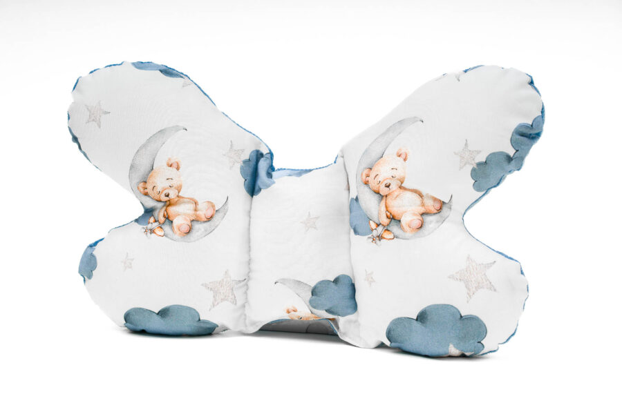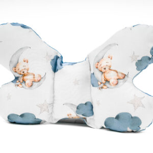 Antywstrząsowa poduszka, która swoją nazwę zawdzięcza nietypowemu kształtowi.Wykonana z myślą o komforcie i bezpieczeństwie dziecka podczas podróży w wózku czy foteliku – specjalne wyprofilowanie zapobiega mikrowstrząsom podczas jazdy.Sprawdza się idealnie już od pierwszych dni życia maleństwa. Wypełniona jest ona niezwykle miękką, sprężystą, atestowaną, antyalergiczną silikonową włókniną.