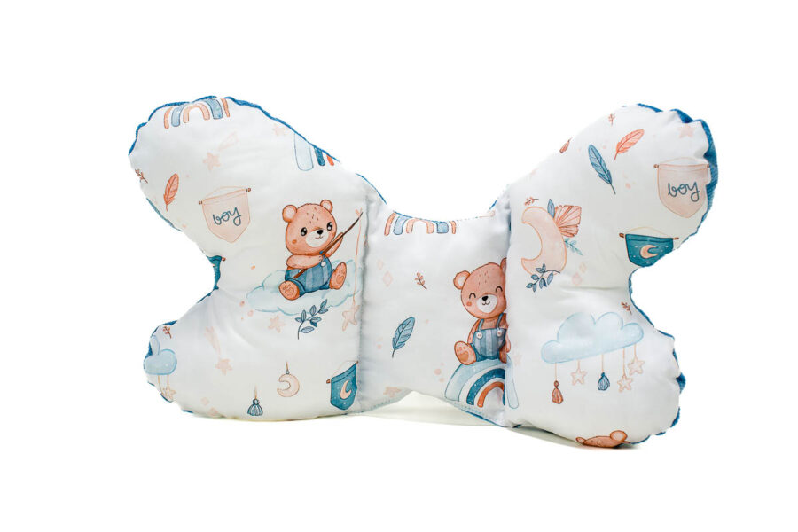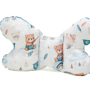 Antywstrząsowa poduszka, która swoją nazwę zawdzięcza nietypowemu kształtowi.Wykonana z myślą o komforcie i bezpieczeństwie dziecka podczas podróży w wózku czy foteliku – specjalne wyprofilowanie zapobiega mikrowstrząsom podczas jazdy.Sprawdza się idealnie już od pierwszych dni życia maleństwa. Wypełniona jest ona niezwykle miękką, sprężystą, atestowaną, antyalergiczną silikonową włókniną.