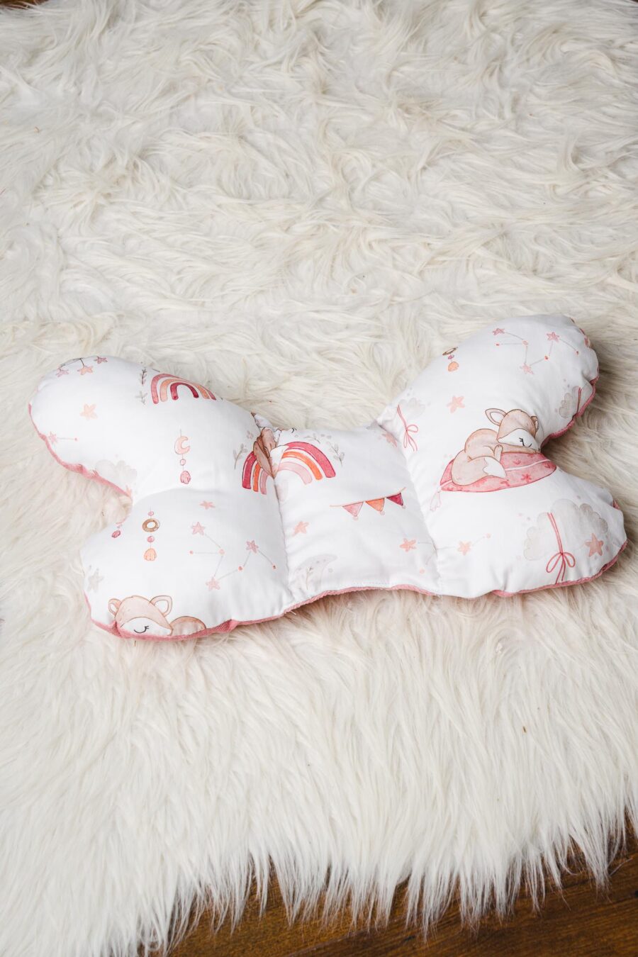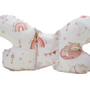Antywstrząsowa poduszka, która swoją nazwę zawdzięcza nietypowemu kształtowi.Wykonana z myślą o komforcie i bezpieczeństwie dziecka podczas podróży w wózku czy foteliku – specjalne wyprofilowanie zapobiega mikrowstrząsom podczas jazdy.Sprawdza się idealnie już od pierwszych dni życia maleństwa. Wypełniona jest ona niezwykle miękką, sprężystą, atestowaną, antyalergiczną silikonową włókniną.
