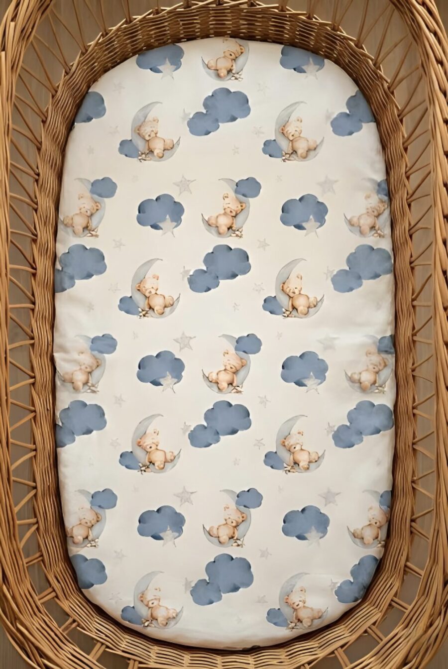 Prześcieradło do gondoli misie na chmurkach