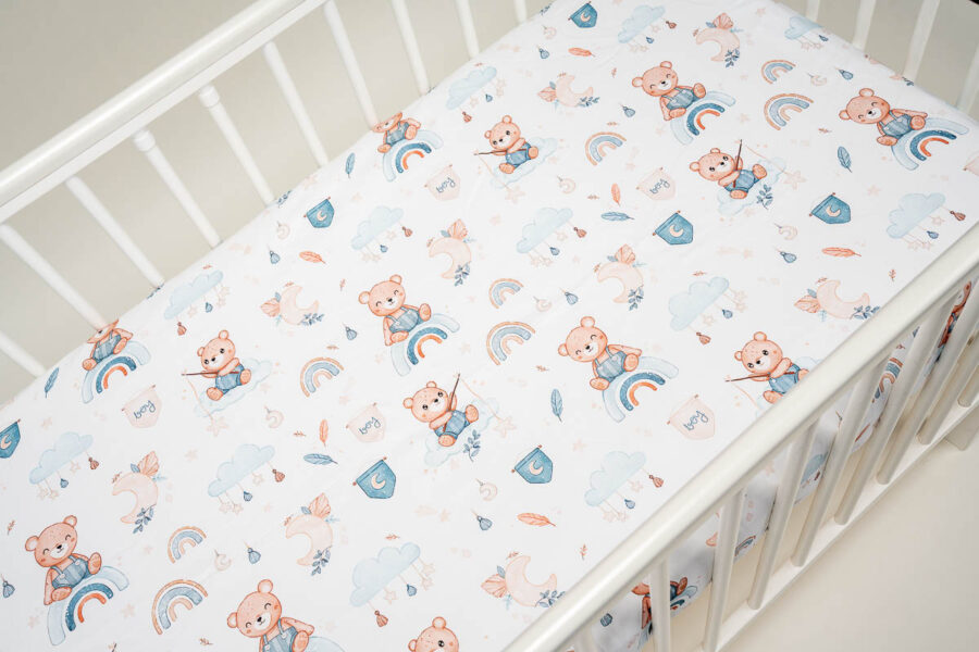 Prześcieradło na gumkę Misie na tęczy