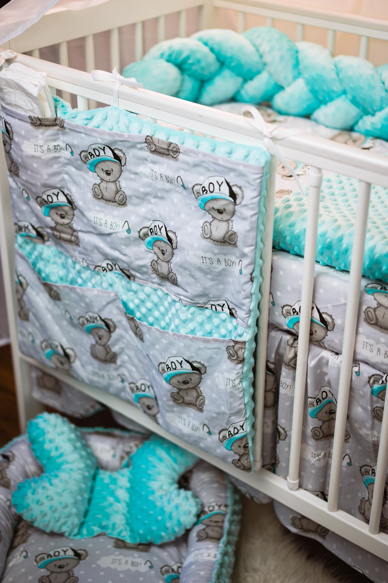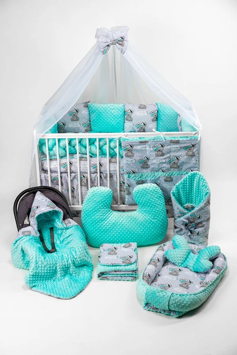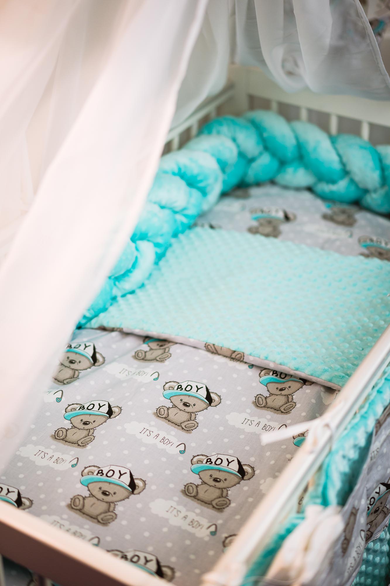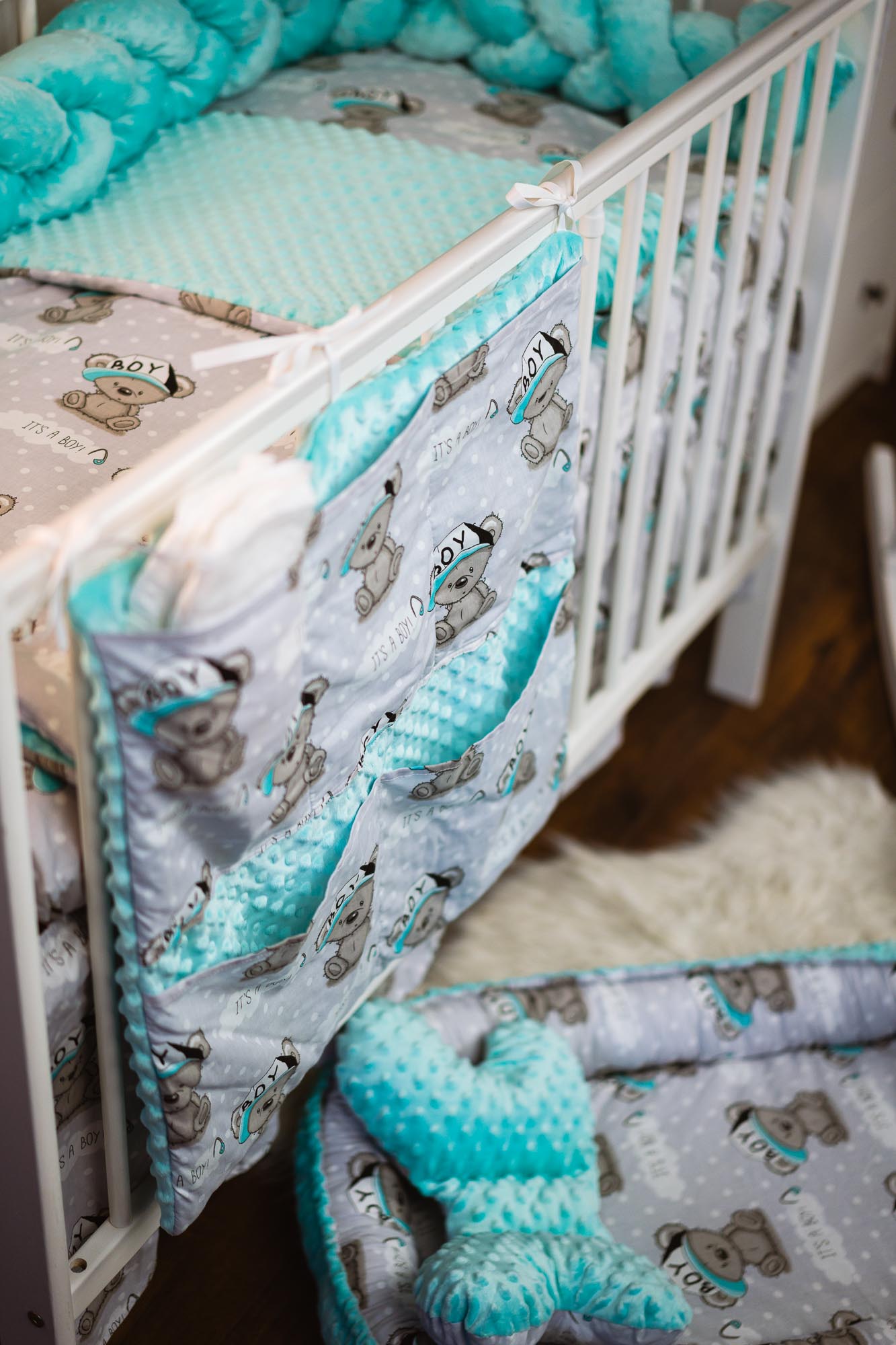 Zestaw do łóżeczka wykonany z Bawełny 100% i minky to idealne połączenie dla maluszka. Ochraniacz do łóżeczka dodatkowo ochroni dziecko przed uderzeniem w szczebelki.