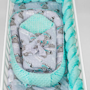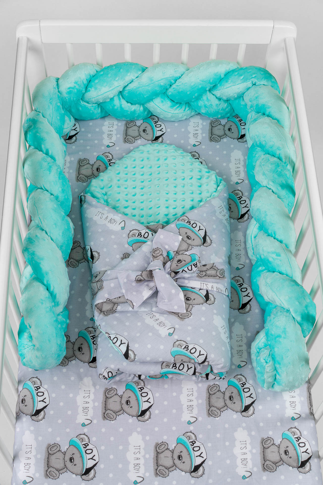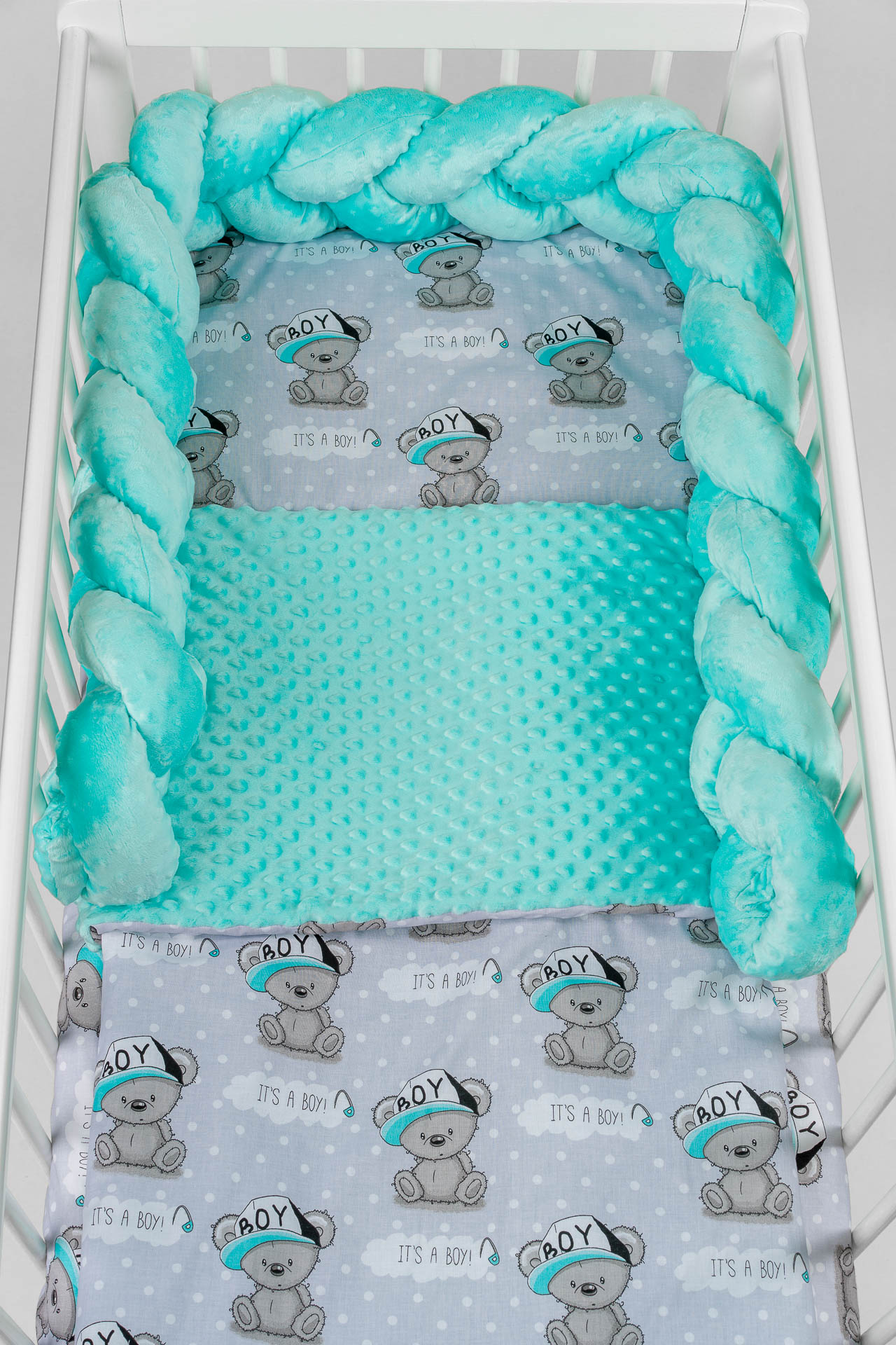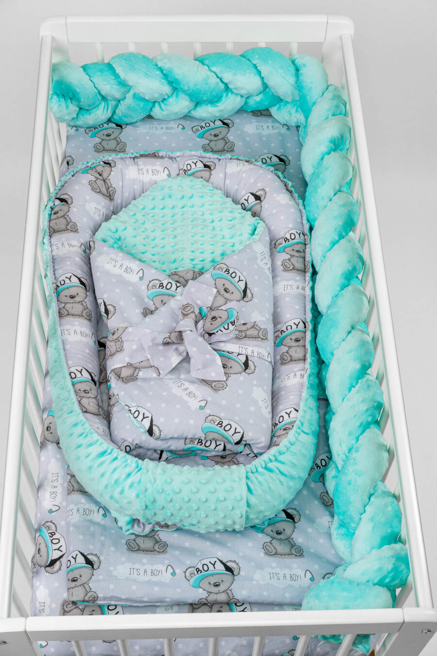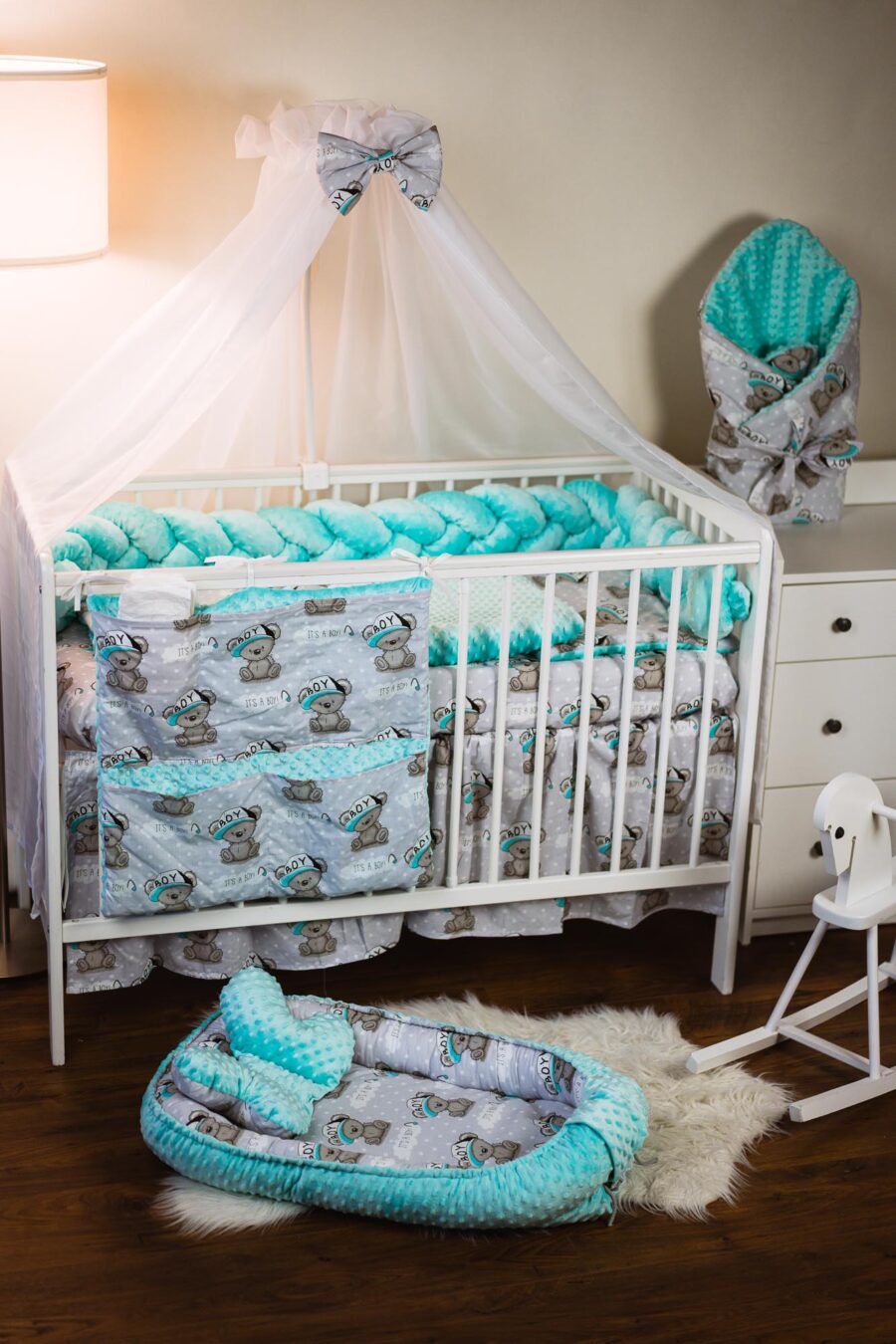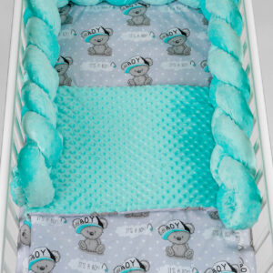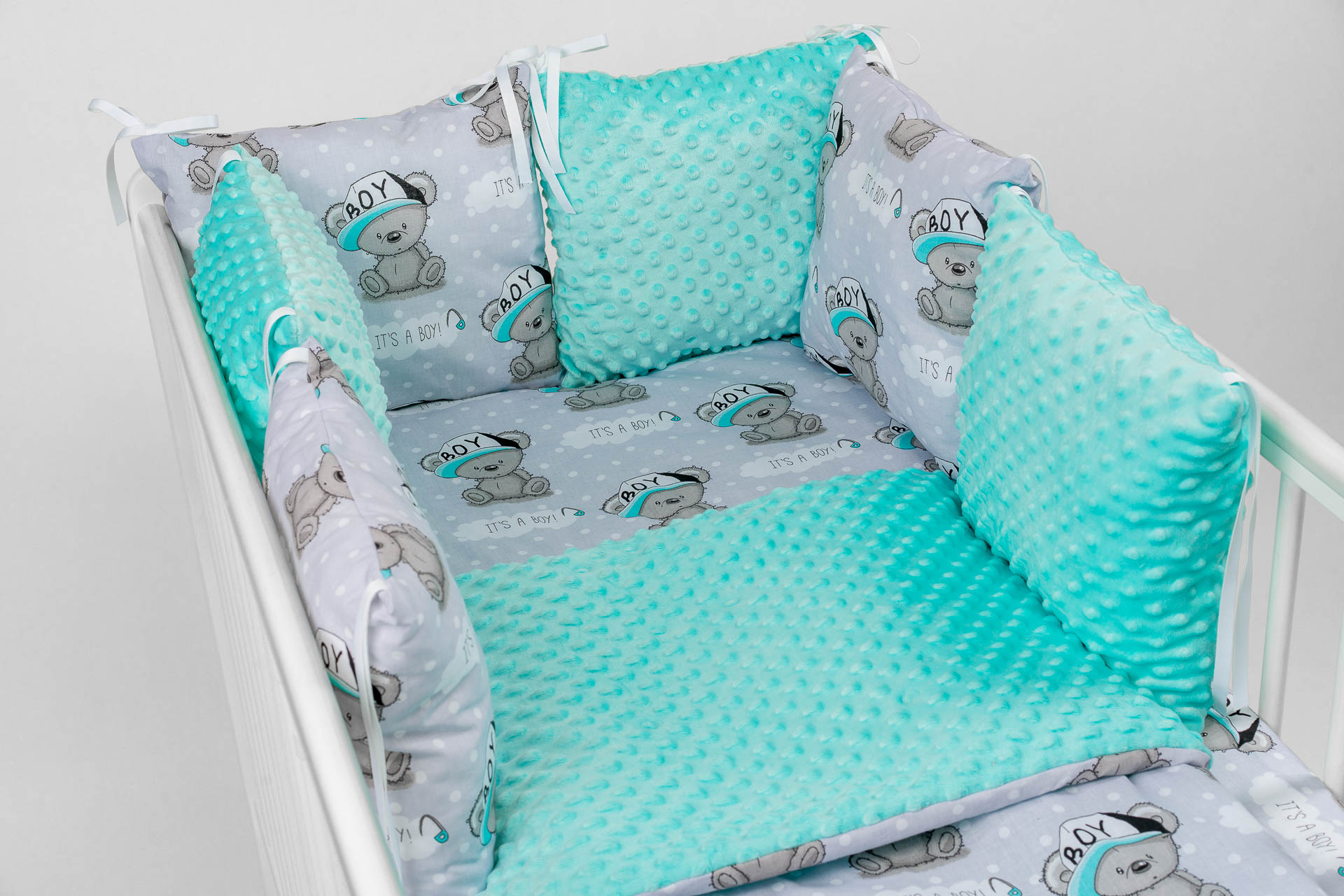 Zestaw do łóżeczka wykonany z Bawełny Premium i Velvetu to idealne połączenie dla maluszka. Ochraniacz do łóżeczka dodatkowo ochroni dziecko przed uderzeniem w szczebelki.