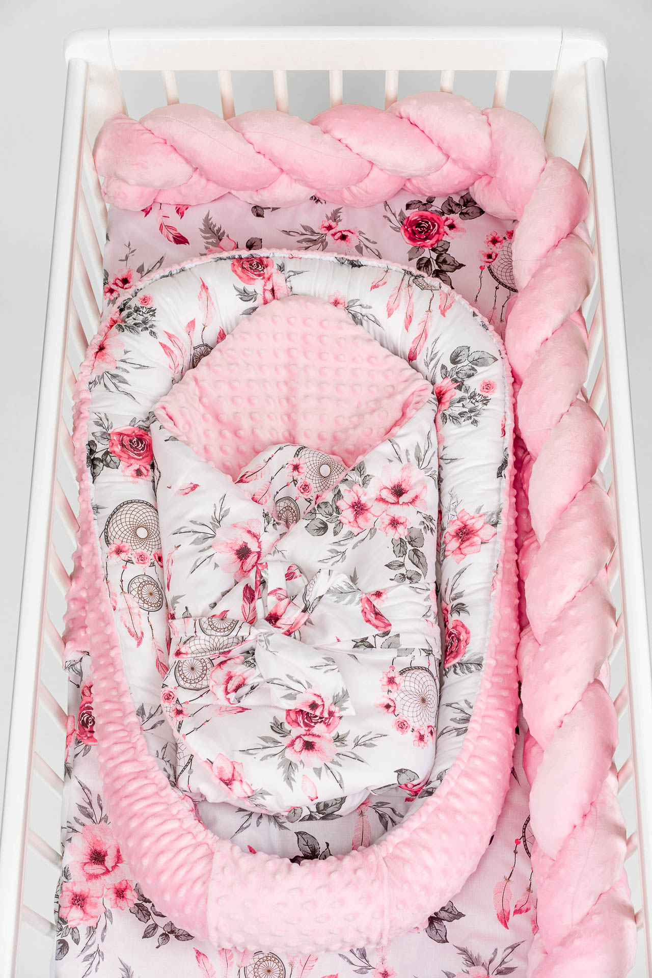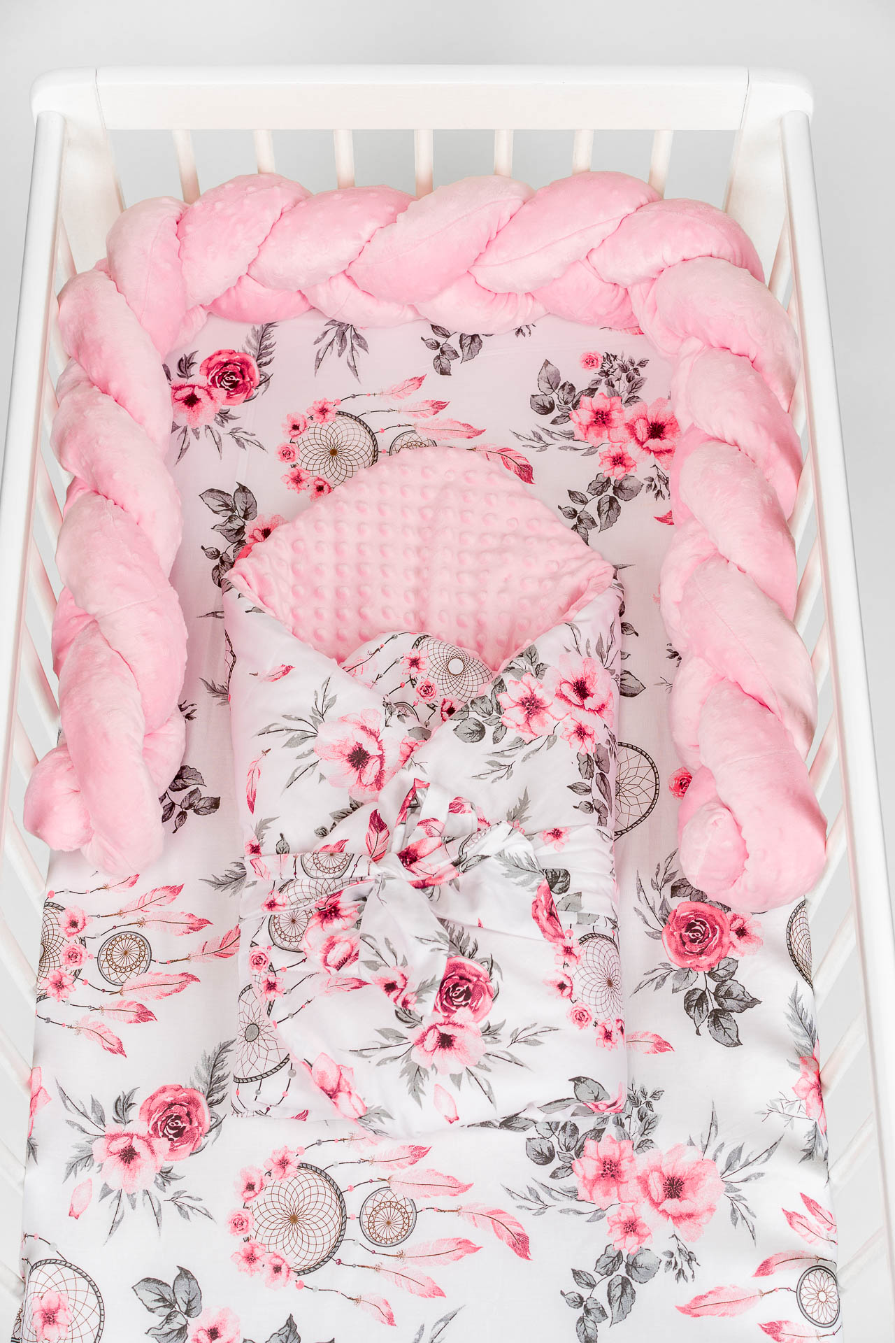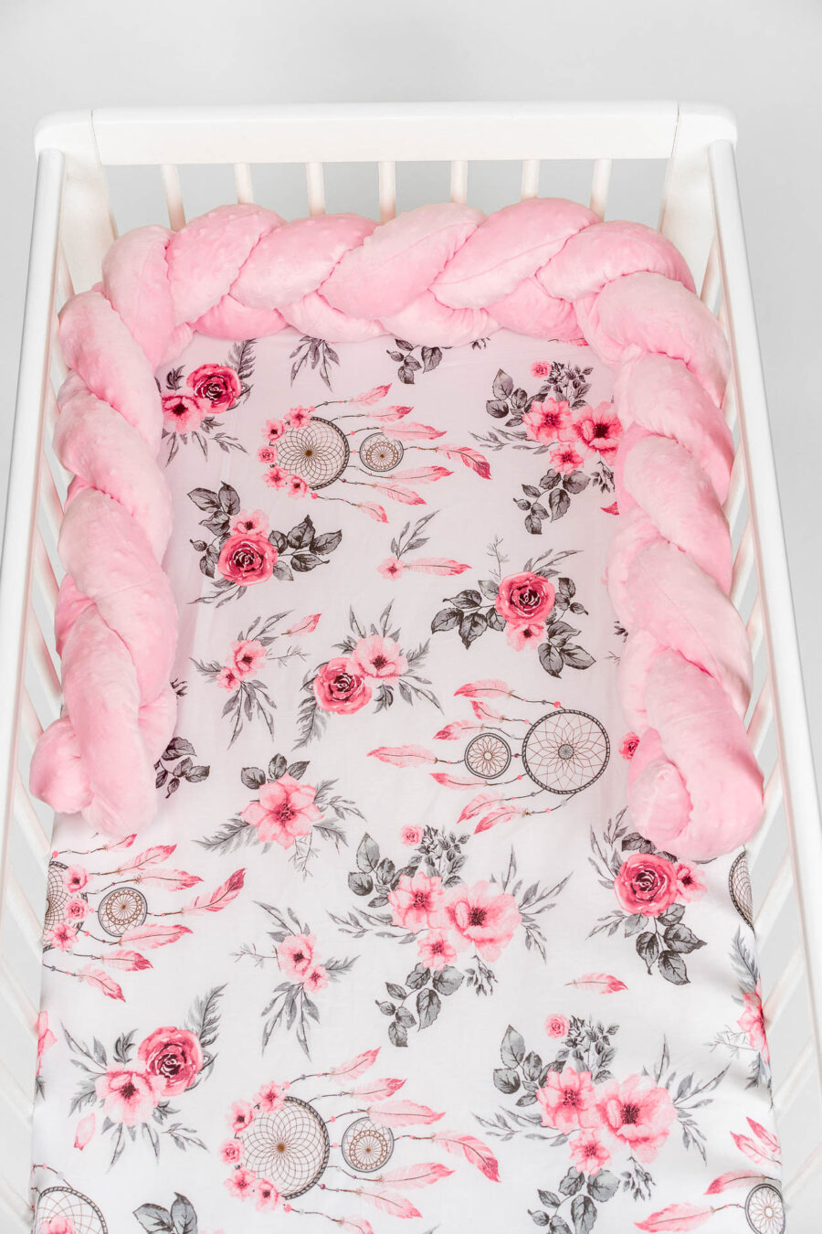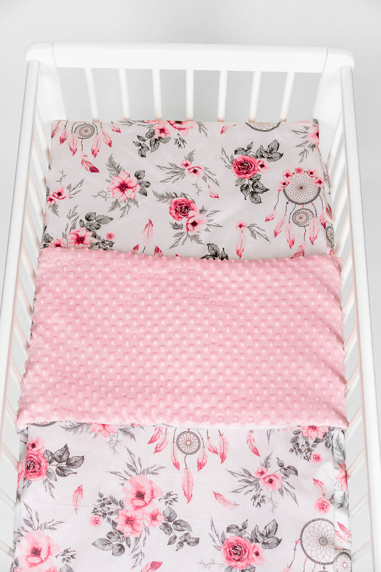 Zestaw do łóżeczka wykonany z Bawełny Premium i Velvetu to idealne połączenie dla maluszka. Ochraniacz do łóżeczka dodatkowo ochroni dziecko przed uderzeniem w szczebelki.