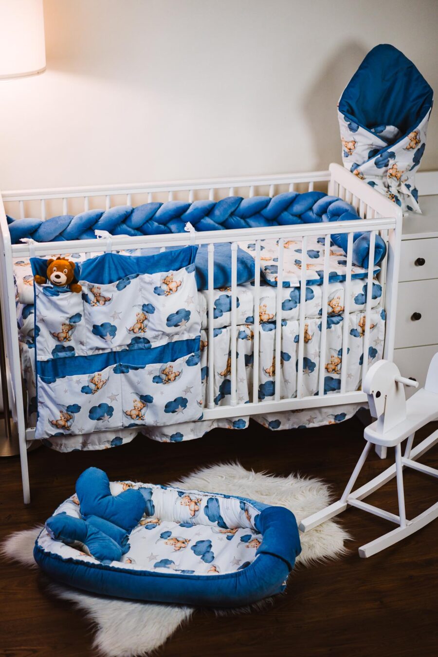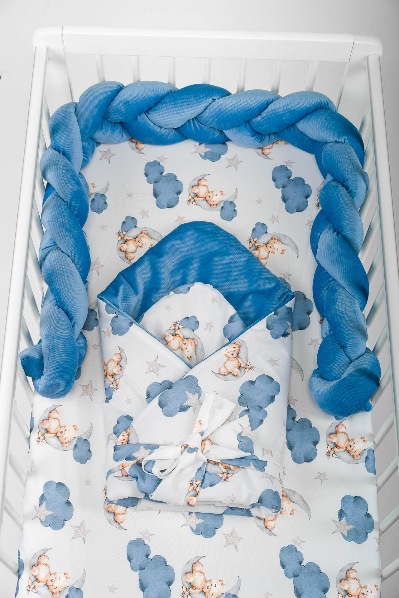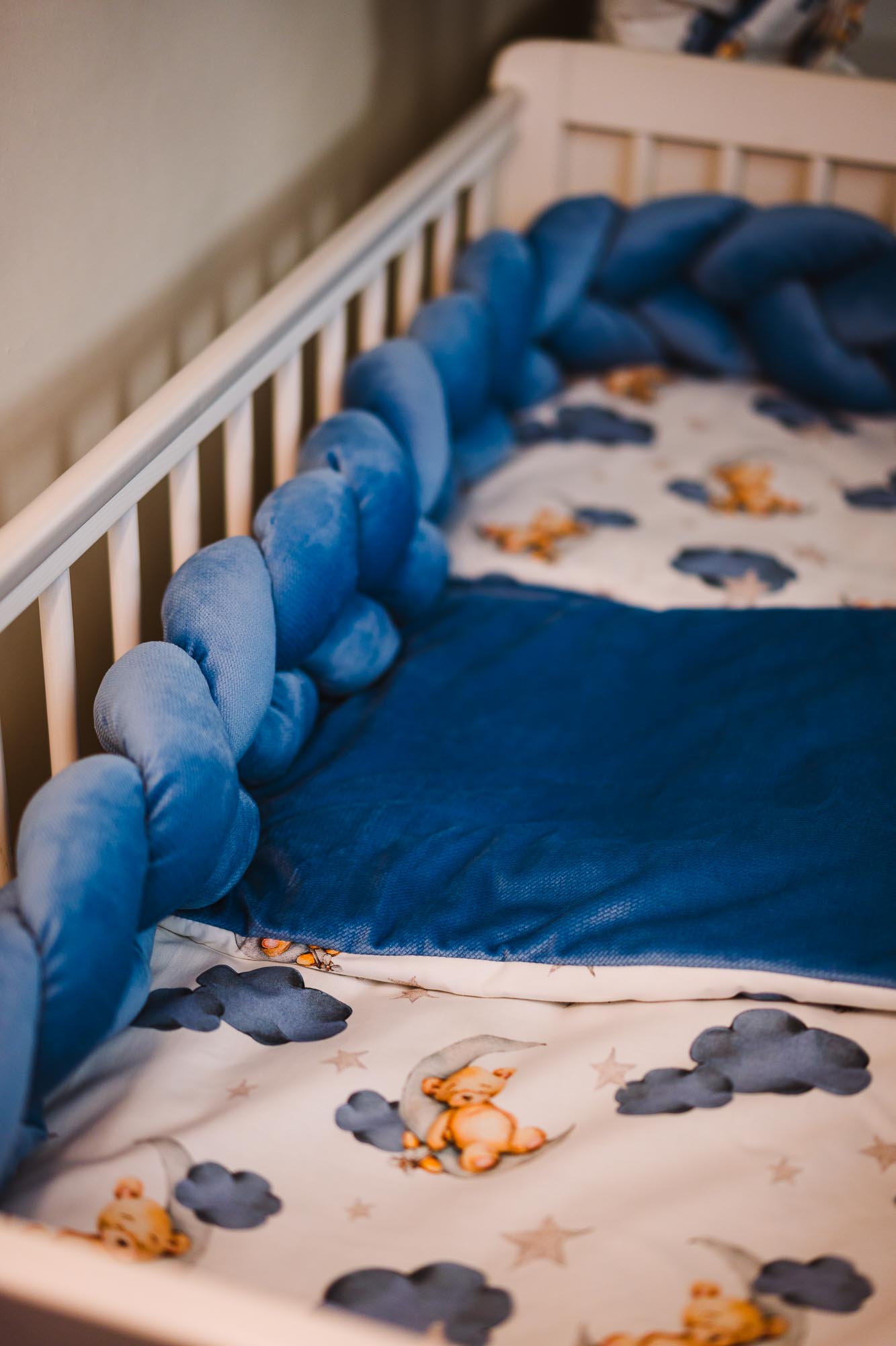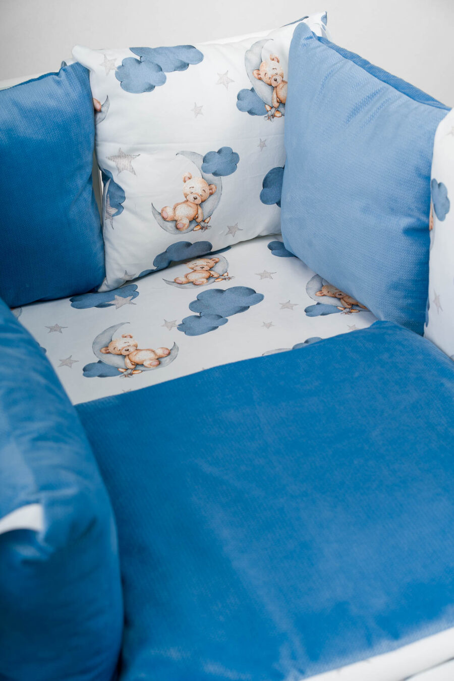 Zestaw do łóżeczka wykonany z Bawełny Premium i Velvetu to idealne połączenie dla maluszka. Ochraniacz do łóżeczka dodatkowo ochroni dziecko przed uderzeniem w szczebelki.