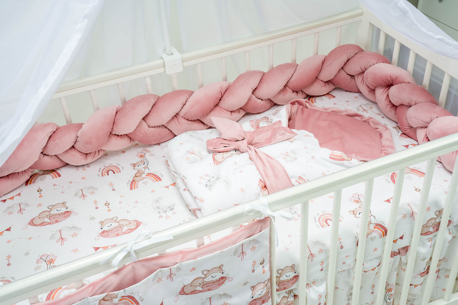 Zestaw przystosowany do łóżeczka 120x60cm, masz większe łóżeczko (140x70cm) skontaktuj się z nami, abyśmy mogli dobrać odpowiednie wymiary poszczególnych elementów!