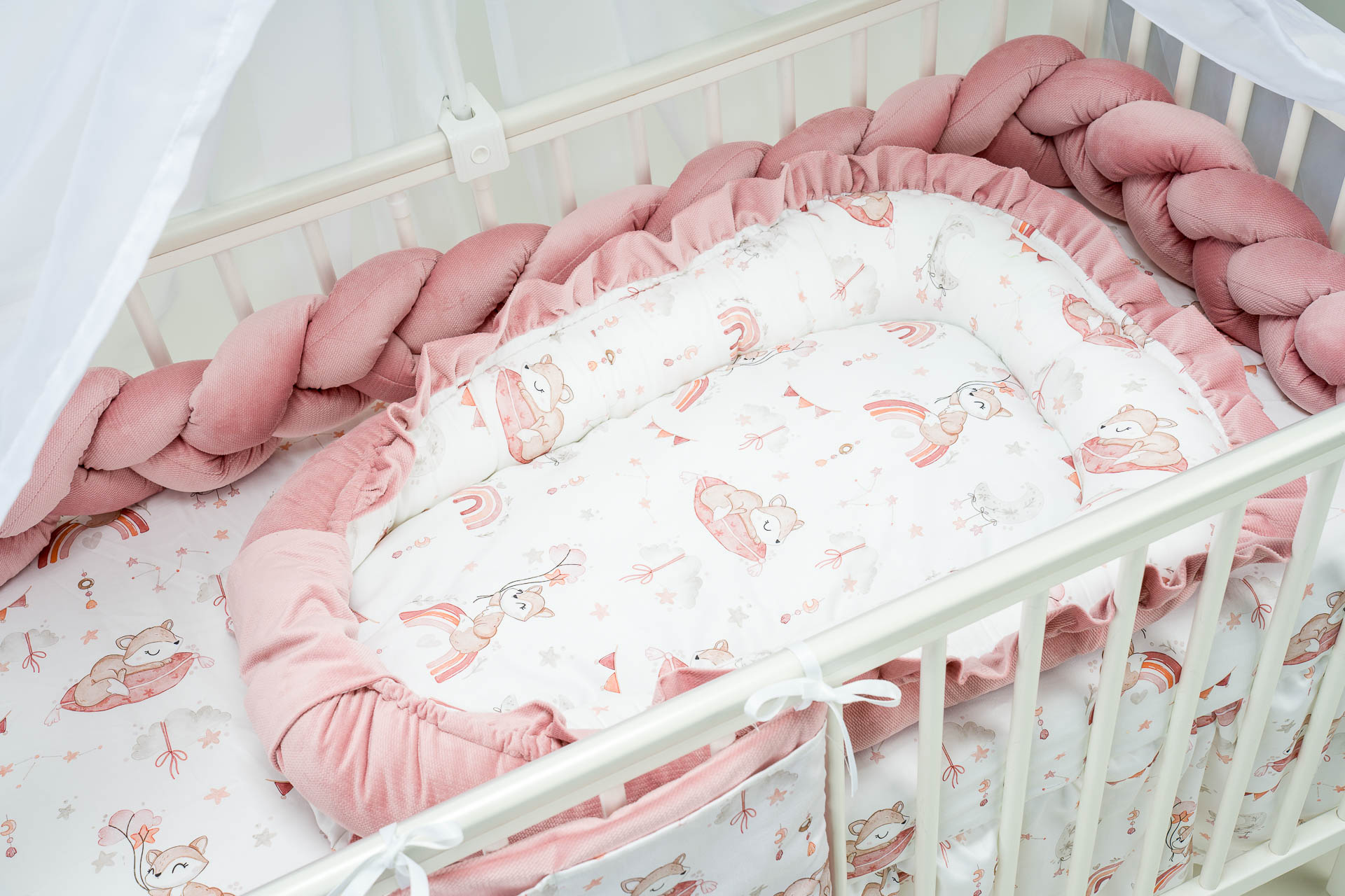 Zestaw do łóżeczka wykonany z Bawełny Premium i Velvetu to idealne połączenie dla maluszka. Ochraniacz do łóżeczka dodatkowo ochroni dziecko przed uderzeniem w szczebelki.