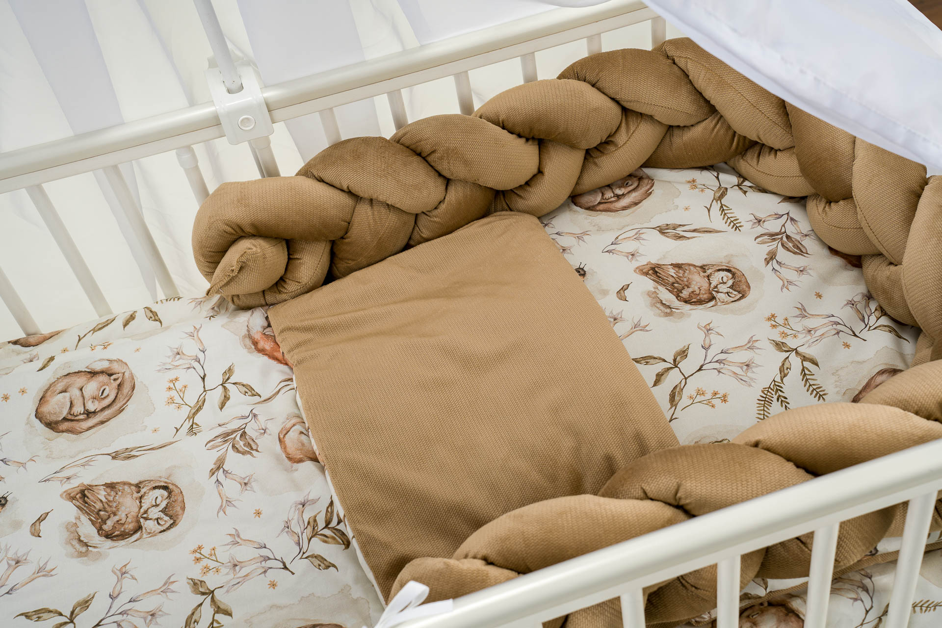 Zestaw do łóżeczka wykonany z Bawełny Premium i Velvetu to idealne połączenie dla maluszka. Ochraniacz do łóżeczka dodatkowo ochroni dziecko przed uderzeniem w szczebelki.