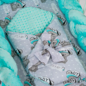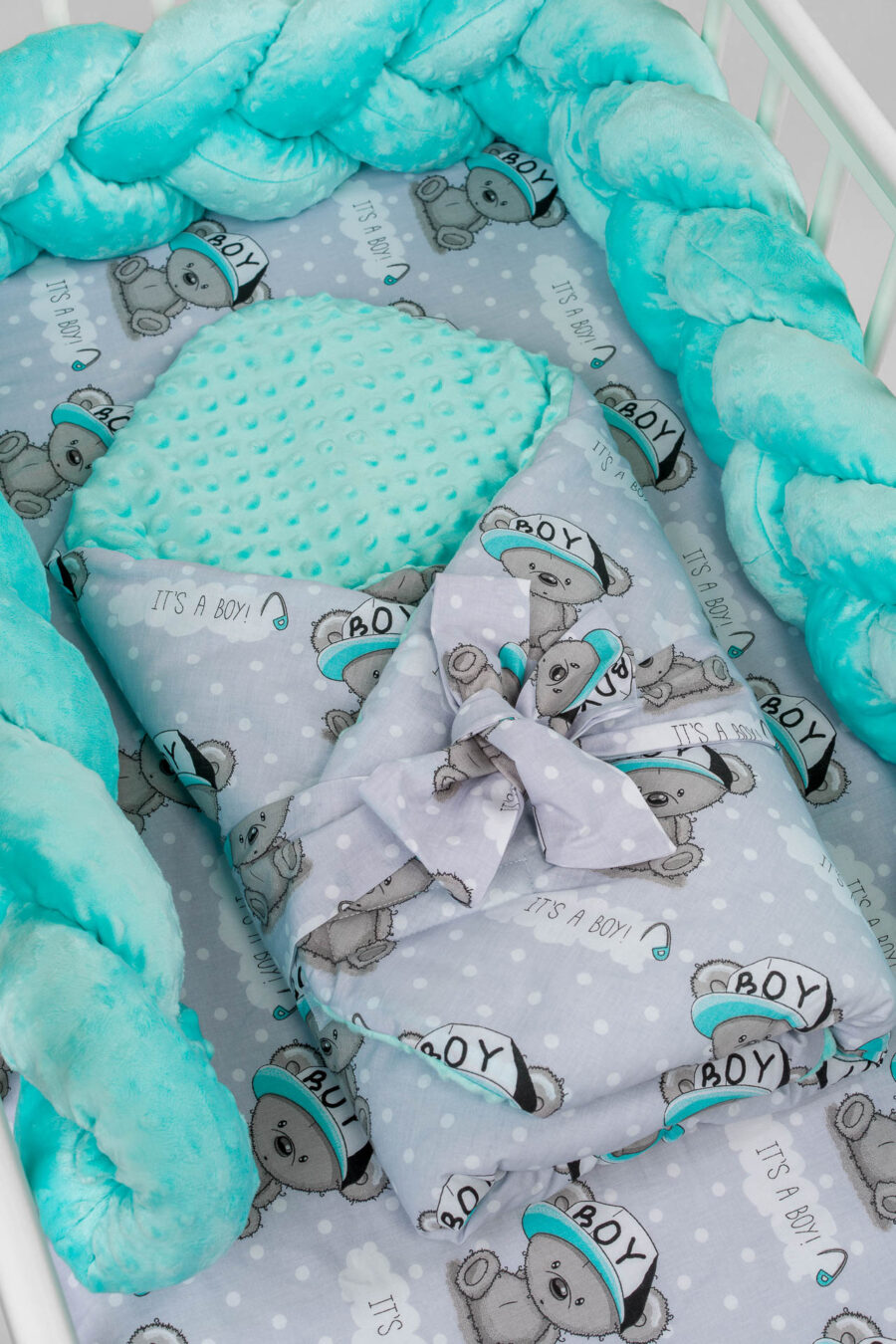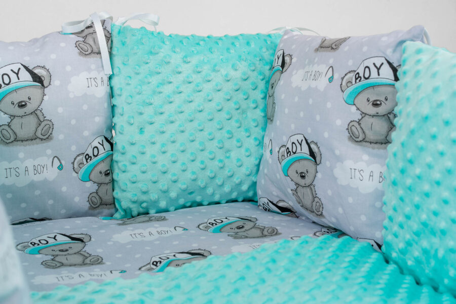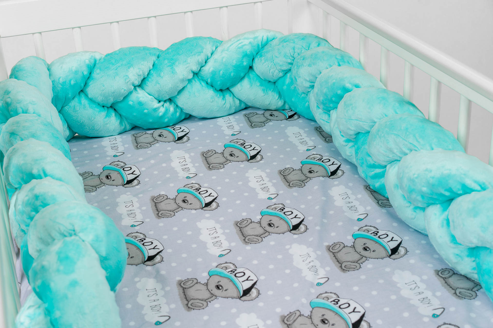 Zestaw do łóżeczka wykonany z Bawełny Premium i Velvetu to idealne połączenie dla maluszka. Ochraniacz do łóżeczka dodatkowo ochroni dziecko przed uderzeniem w szczebelki.
