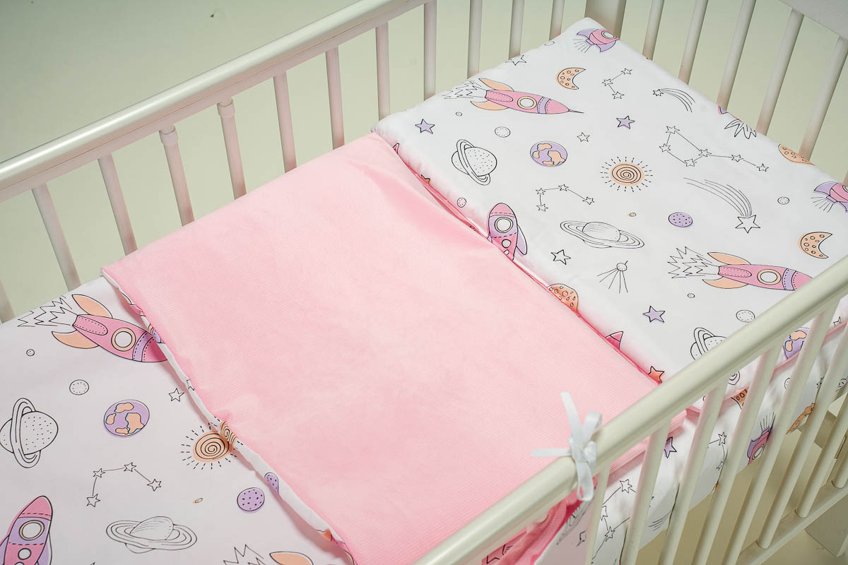 Zestaw do łóżeczka wykonany z Bawełny Premium i Velvetu to idealne połączenie dla maluszka. Ochraniacz do łóżeczka dodatkowo ochroni dziecko przed uderzeniem w szczebelki.