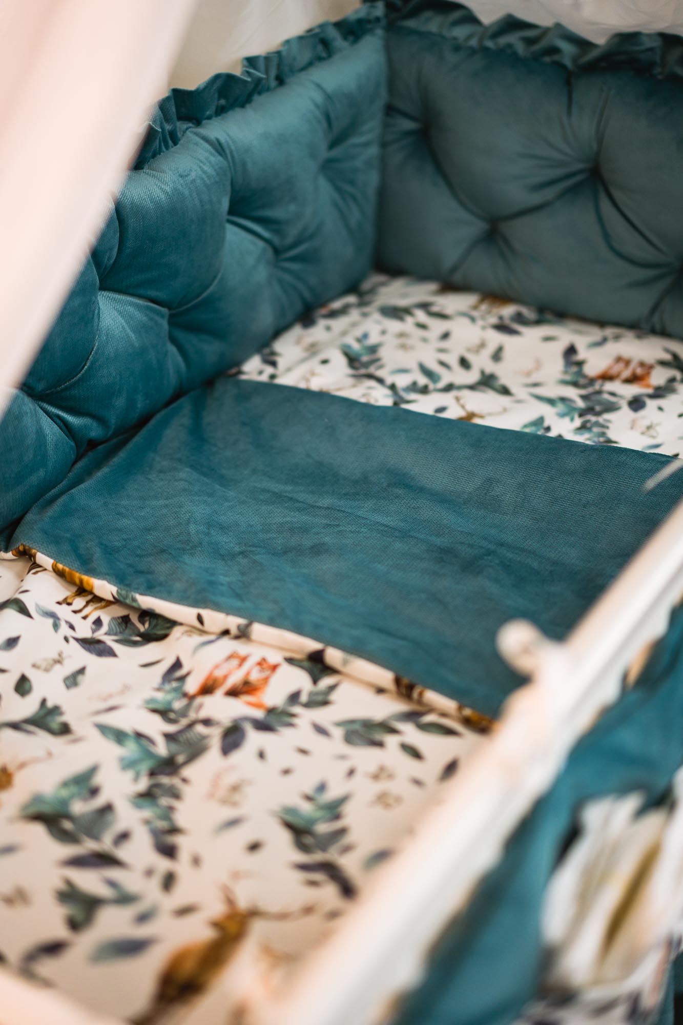 Zestaw do łóżeczka wykonany z Bawełny Premium i Velvetu to idealne połączenie dla maluszka. Ochraniacz do łóżeczka dodatkowo ochroni dziecko przed uderzeniem w szczebelki.
