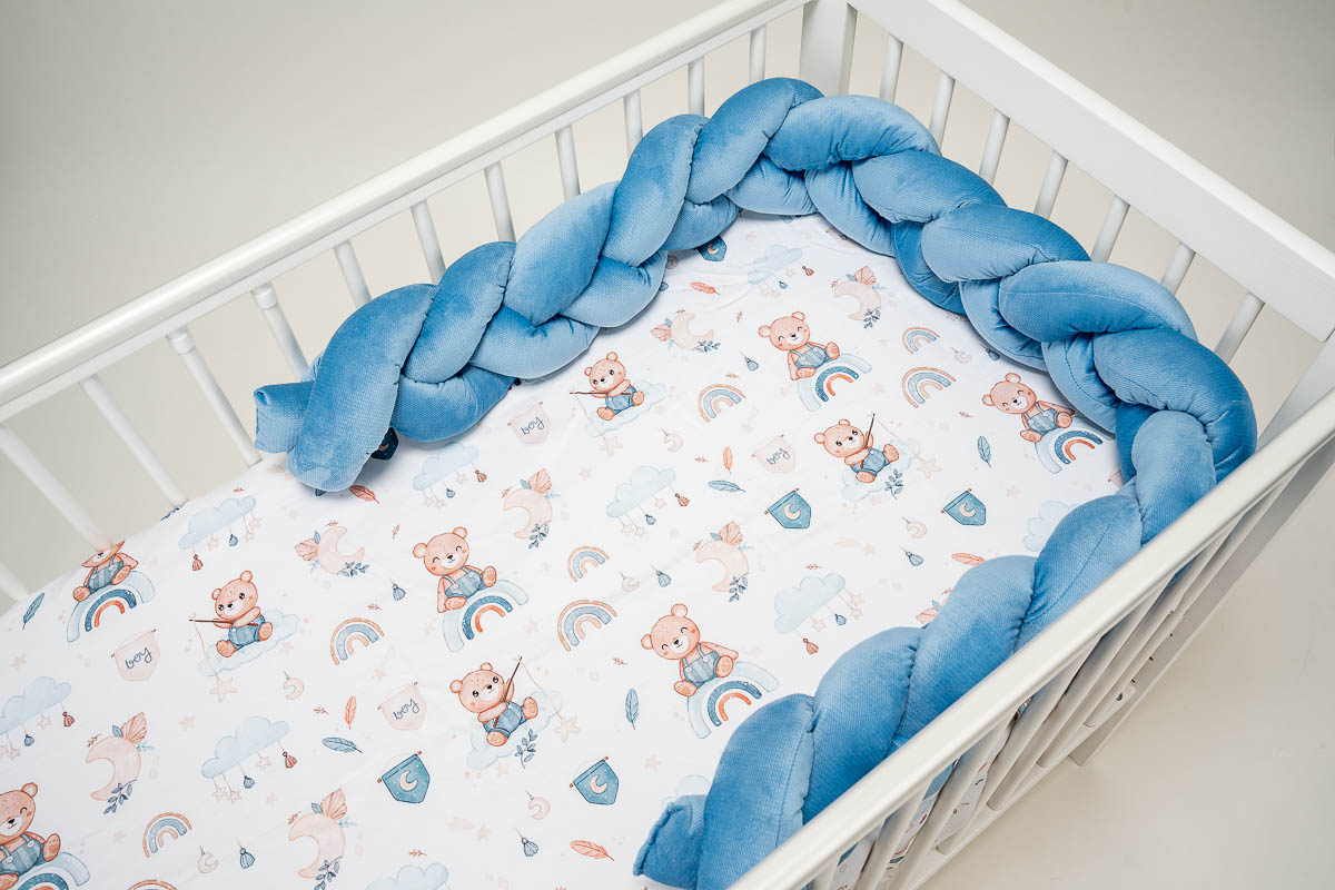 Zestaw do łóżeczka wykonany z Bawełny Premium i Velvetu to idealne połączenie dla maluszka. Ochraniacz do łóżeczka dodatkowo ochroni dziecko przed uderzeniem w szczebelki.